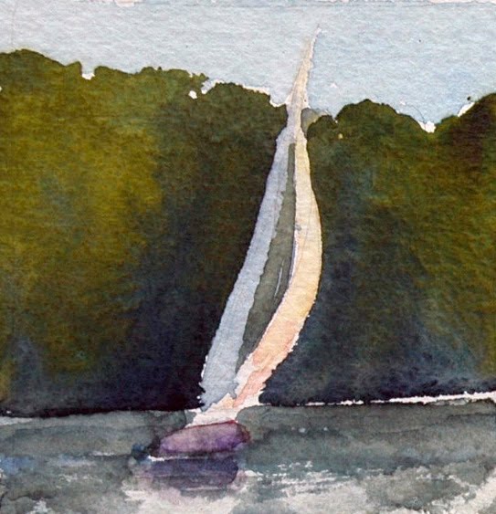 Bright sail on John's Bay, South Bristol, ME on 300 lb. Arches.